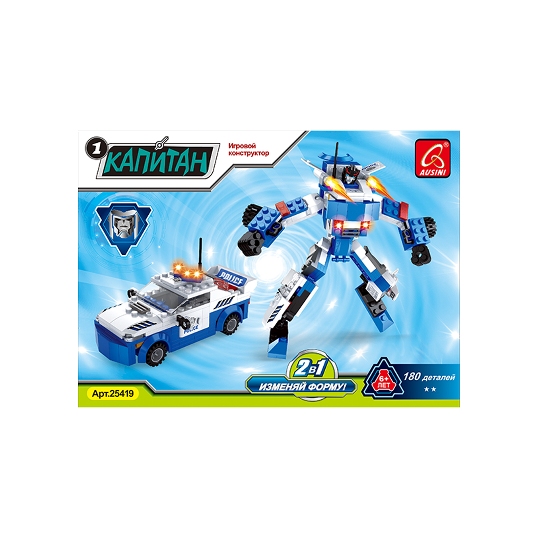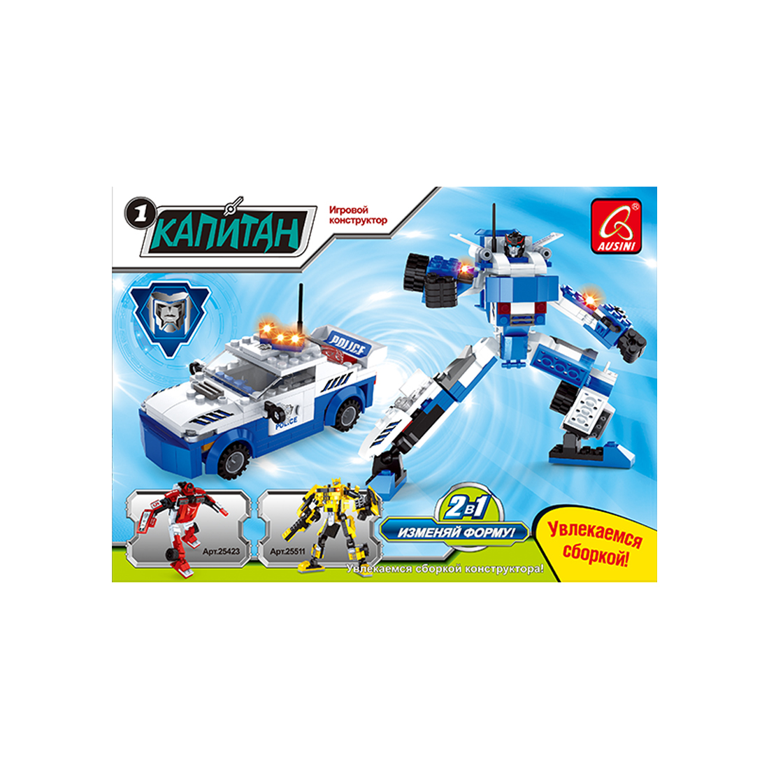 Игровой конструктор Ausini 25419 "Робот трансформер" Из этого набора констуктора собирается полицейский робот трансформер, который может превращаться в полицейскую машину и преследовать и настигать преступников. Встань на стражу справедливости со своим роботом. Сборка конструктора AUSINI, поможет ребёнку развить внимательность, логическое мышление, научиться концентрировать внимание, фантазию и мелкую моторику рук. Плюс, детали совместимы с конструкторами других марок.