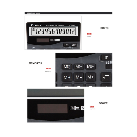 Серия калькуляторов Comix предназначена для бухгалтеров, чей опыт и умение работать с калькулятором перешла в разряд сверхбыстрых манипуляций, обеспечивая так необходимое им качество и надежность, обусловленное следующими преимуществами: