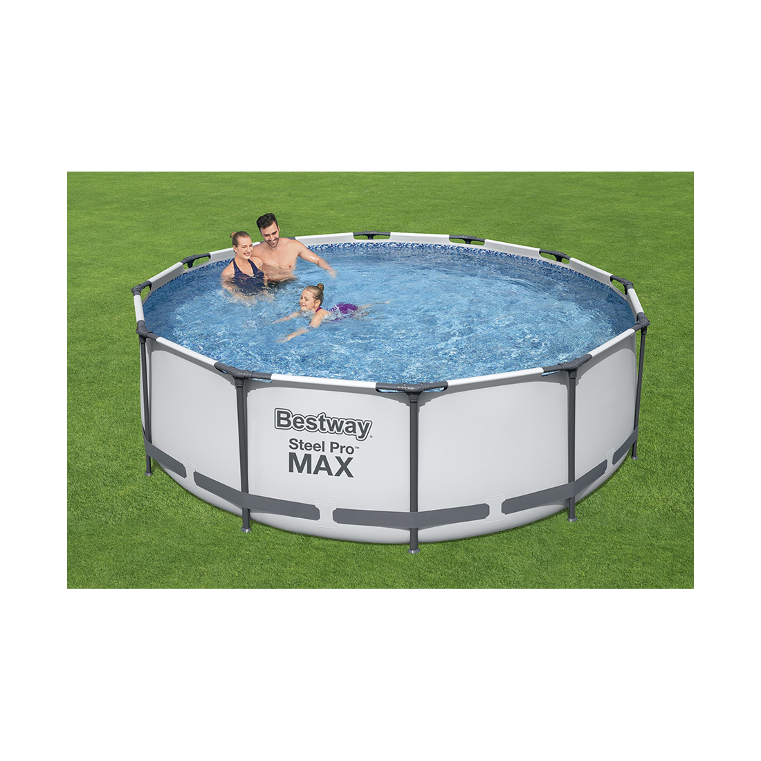 Каркасный бассейн Steel Pro MAX 366 х 100 см, BESTWAY, 56418, Винил, 9150 л., Стальной каркас, Ф-насос 58383 (2006л/ч), Лестница 58335, Серый, Цветная коробка