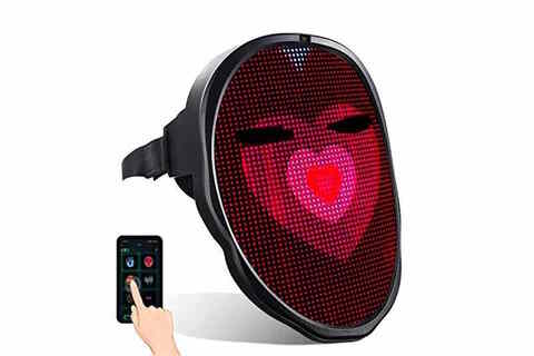 Светодиодная маска управляется со смартфона по Bluetooth с приложения Shining Mask. Через приложение можно выбирать встроенные маски (70 шт)+ маски аниме (45 шт), писать надписи. Можно загружать свои маски с телефона.