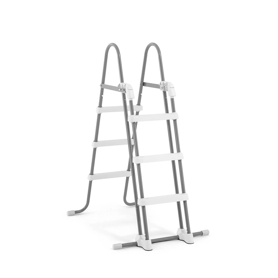 Лестница для каркасных и надувных бассейнов с высотой борта до 107 см. Легко и быстро устанавливается, имеет широкий угол между сторонами, достаточный для того чтобы не касаться стенок бассейна и в тоже время быть удобной в использовании. Стойки лестницы металлические с влагозащищенным покрытием, имеют специальные наконечники-колпачки, защищающие дно бассейна от повреждения. Ступеньки сделаны из усиленного ABS пластика, имеют противоскользящую насечку. Конструкция лестницы позволяет закрыть доступ детей в бассейн без присмотра взрослых.