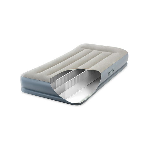 Матрас надувной Dura-Beam Pillow Rest Mid-Rise Airbed (Twin) 191 х 99 х 30 см, INTEX, 64116NP, Винил, Флокированый верх, Встроенные эл. насос и подушка, Технология Fiber-Tech, Серый, Цветная коробка