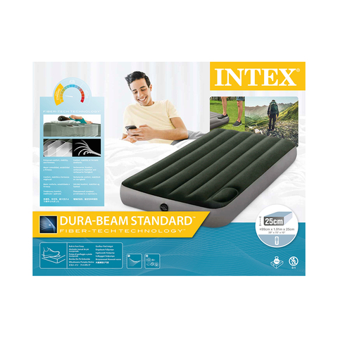 Матрас надувной Dura-Beam Downy Airbed (Twin) 191 х 99 х 25 см, INTEX, 64761, Винил, Флокированый верх, Встроенный ножной насос, Технология Fiber-Tech, Зелёный, Цветная коробка