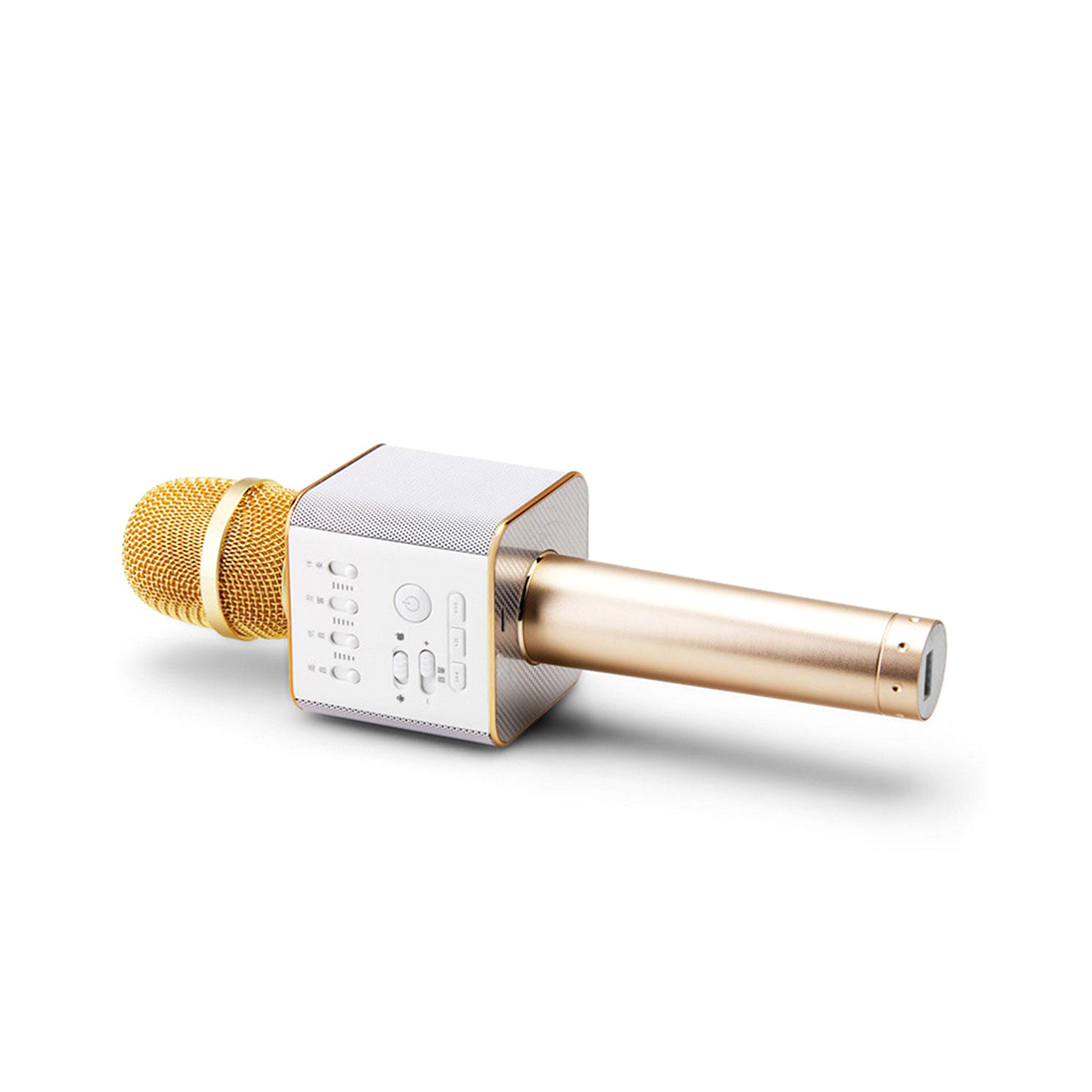 Блютуз караоке микрофон Q9 Золотой Портативный караоке микрофон - это новая, ставшая популярной модель функциональной колонки и беспроводного микрофона в одном корпусе. Модель имеет microUSB и USB разъёмы, позволяющие подключить внешний накопитель с песнями, и управлять ими прямо с панели микрофона, а также разъём для TF карты. Беспроводной микрофон оснащен встроенной панелью, позволяющей переключать, останавливать, воспроизводить, настраивать эквалайзер и громкость музыки или голоса. Технические характеристики: Динамик: 5Вт*2 Частота: 30Гц - 20КГц Сопротивление: 2*4 Ω Режим передачи: Bluetooth Аккумулятор: Литиевый 2600 мАч Вход: 5В / 0.8 А Время подзарядки: 3-4 часа Длительность работы: 11-14 часов В комплекте: Микрофон - 1 шт. USB зарядный кабель - 1 шт. Audio кабель - 1 шт.