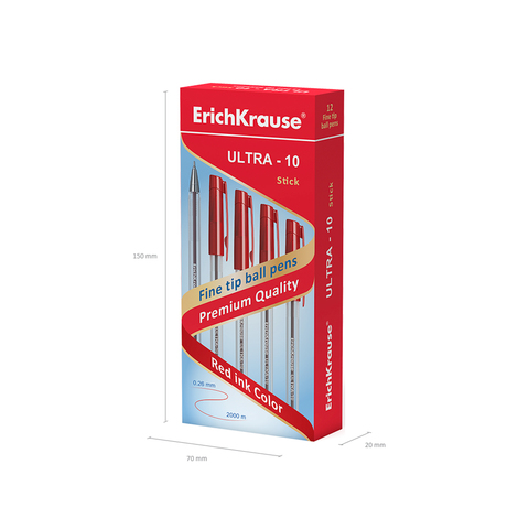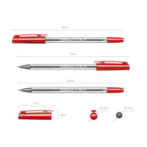 Классическая шариковая ручка Stick с металлизированным наконечником, утонченным игольчатым типом пишущего узла Fine tip и заменяемым стержнем. Ручка имеет прозрачный шестигранный корпус с удобной профилированной грип-зоной и вентилируемый колпачок. Цвет колпачка и заглушки соответствует цвету чернил. 5-канальный пишущий узел с диаметром шарика 0.7 мм в сочетании с чернилами пониженной вязкости обеспечивает точное и быстрое письмо. Длина непрерывной линии составляет 2000 м при толщине 0.26 мм.