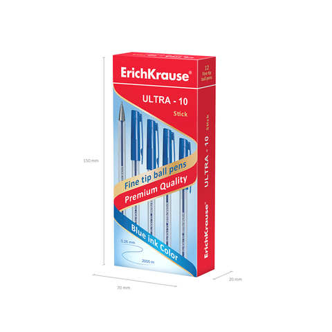 Классическая шариковая ручка Stick с металлизированным наконечником, утонченным игольчатым типом пишущего узла Fine tip и заменяемым стержнем. Ручка имеет прозрачный шестигранный корпус с удобной профилированной грип-зоной и вентилируемый колпачок. Цвет колпачка и заглушки соответствует цвету чернил. 5-канальный пишущий узел с диаметром шарика 0.7 мм в сочетании с чернилами пониженной вязкости обеспечивает точное и быстрое письмо. Длина непрерывной линии составляет 2000 м при толщине 0.26 мм.