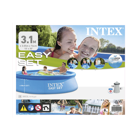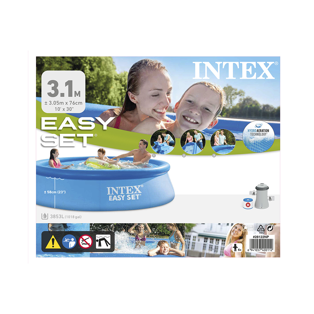 Семейный надувной бассейн Easy Set 305 x 76 см, INTEX, 28122NP, Винил, 3853 л., Ф-насос 28602 (1250л/ч), Голубой, Цветная коробка