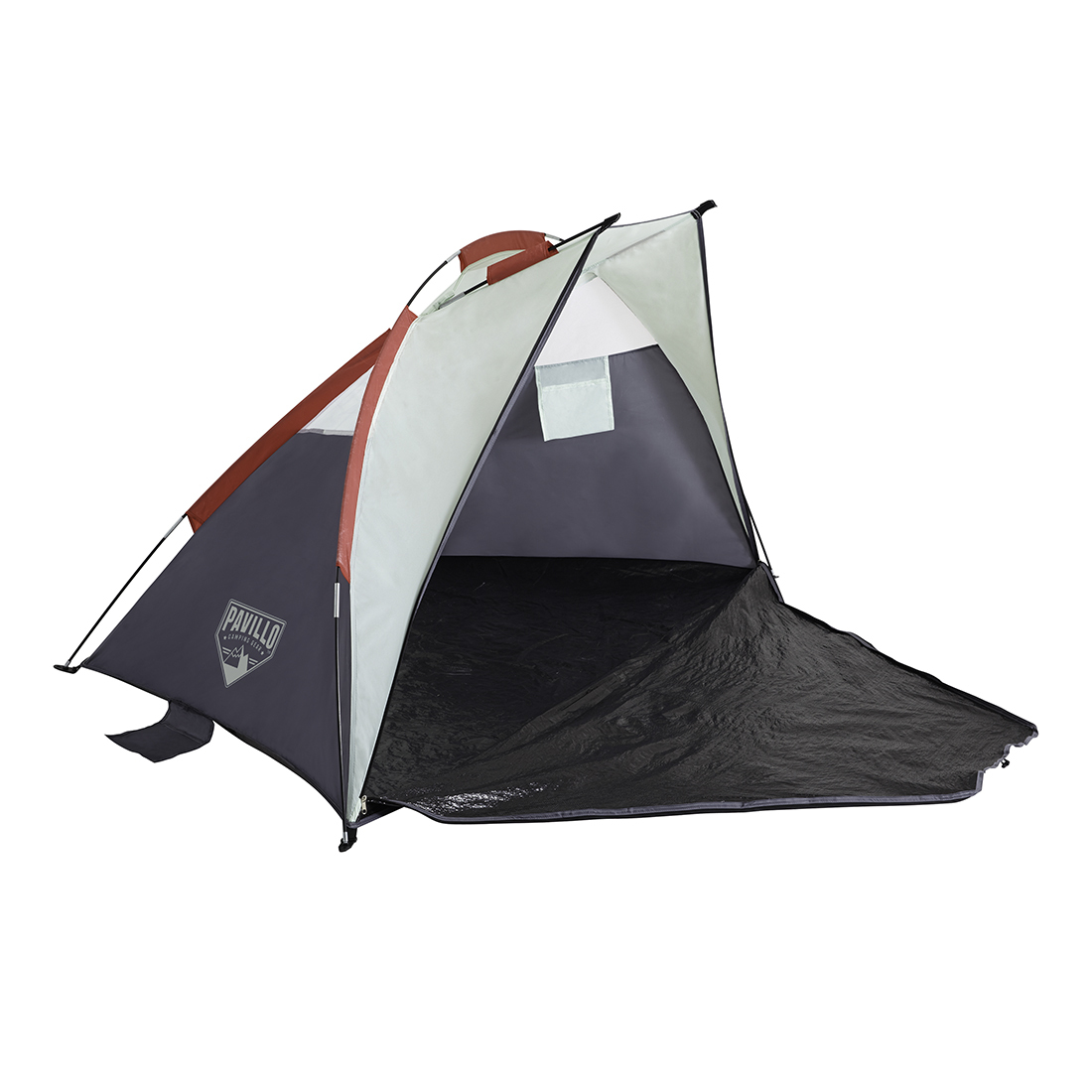 Если вы собираетесь провести целый день на пляже, защититесь от перегрева на солнце. В пляжной палатке сможете загорать через тент из лёгкой ткани, который пропускает неопасные УФ-лучи. Она быстро устанавливается даже на песке. Сложите в палатку вещи, которым нельзя нагреваться на солнце. В небольшой карман уберите очки, полотенце другие необходимые предметы. Дно палатки сделано из плотного материала, который обеспечит долгий срок службы всей конструкции.