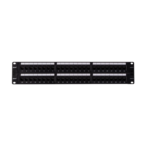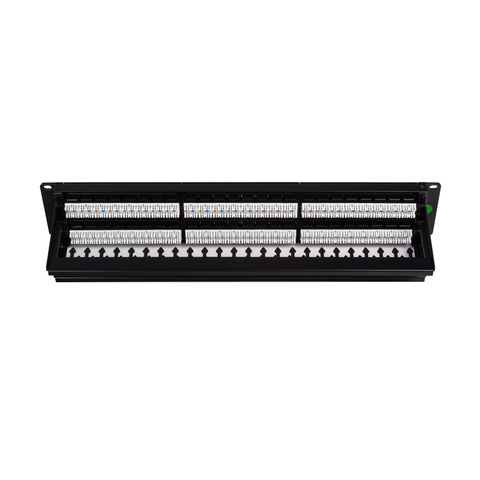 Коммутационная панель (patch panel) состоит из 48 портов RG 45 с фронтальной стороны и разъёмов DUAL IDC с тыльной стороны.