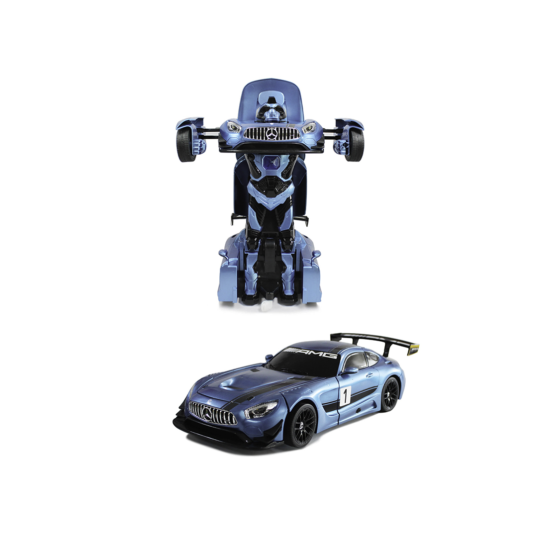 Новый уровень трансформеров! Машинка Rastar Mercedes-AMG GT 3 – реалистичная копия своего прототипа. Пара движений, и это уже фантастический робот с точной проработкой деталей. Восторг от игры вырастет многократно! Машинка – копия Mercedes-AMG GT 3 в масштабе 1:14. Простая трансформация: за пару движений модель превращается в робота-рыцаря. Рыцарь вооружен секирой и щитом. Игрушка находится на радиоуправлении на частоте 2,4 GHz. Пульт радиоуправления в робо-стиле. Для работы требуются батарейки: 4 x AA и 3 x AAA