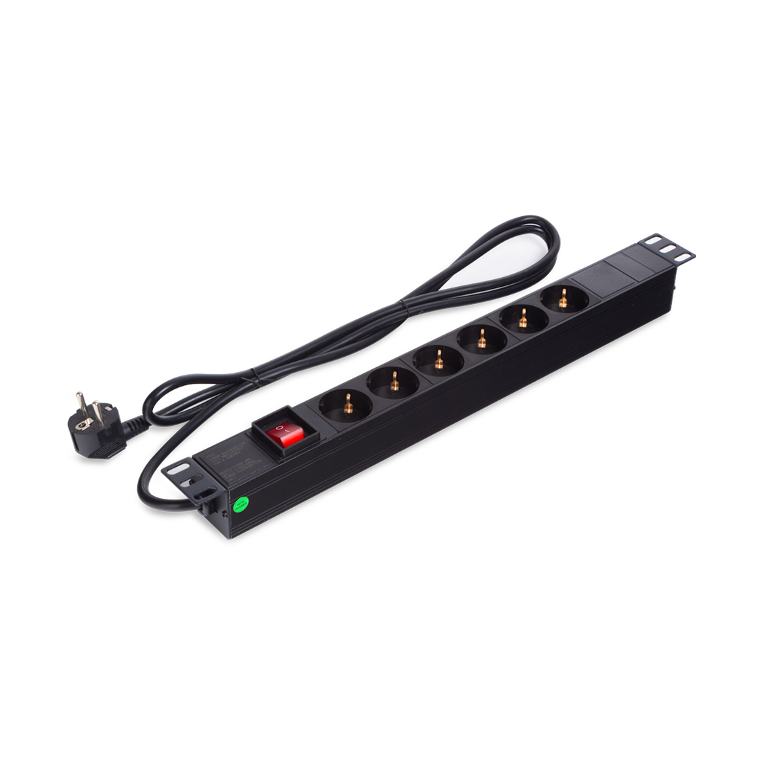 Блок сетевых розеток предназначен для распределения электропитания и защиты компьютеров, электронной техники и активного оборудования в телекоммуникационных шкафах и стойках. Тип вилки подключения сетевого фильтра - Schuko.