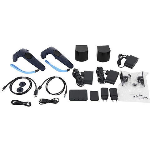 Комплектация | Шлем виртуальной реальности Vive Pro: Наушники (встроены в шлем) Накладки для наушников (2 шт.) Лицевая накладка (установлена ) Чистящая салфетка Коммуникационный модуль: Блок питания Кабель USB 3.0 Display Port кабель Контроллеры Vive (версия 2018), 2 шт.: Блоки питания (2 шт.) Ремешки (2 шт., прикреплены) Кабели micro-USB (2 шт.) Базовые станции (2 шт.) - SteamVR Base Station 2.0: Блоки питания (2 шт.) Монтажный комплект (2 монтажные опоры, 4 винта и 4 стеновых анкера) Кабель синхронизации (опционально) В комплектацию также входит документация. |