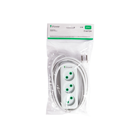 Удлинитель iPower iP3m Удлинители iPower предназначены для подключения электроприборов в местах, удалённых от стационарных розеток. Розеточный блок изготовлен из ударопрочной пластмассы.