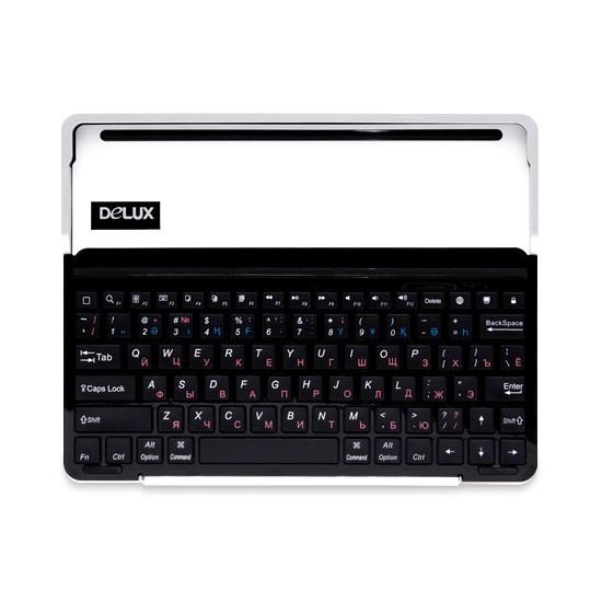 Универсальная клавиатура Delux IStationс c технологией Bluetooth Компания Delux представила клавиатуру для Apple iPad/2/3. Delux IStation- это многофункциональная клавиатура с Bluetooth технологией и по совместимости чехол для Apple iPad, которая придаст вашему устройству дополнительные функции, также подходит для Android-устройств. Соединения клавиатуры и планшета происходит по Bluetooth или через кабель встроенный в заднюю панель клавиатуры с 30 пиновым коннектором. Клавиатура оснащена AV выходом для подключения IPad к телевизору, что позволит в командировках использовать клавиатуру для показа презентаций. Также есть разъём micro USB для зарядки клавиатуры (данный кабель входит в комплект "micro USB-USB"). Разъём USB 2.0 для подключения карт памяти с разъёмом USB. IStation имеет встроенную литий-ионную батарею с возможностью работать до 90 дней без подзарядки. Раскладка с 16 функциональными клавишами для работы с офисными приложениями, интернет- браузером и управления медиапроигрывателем.