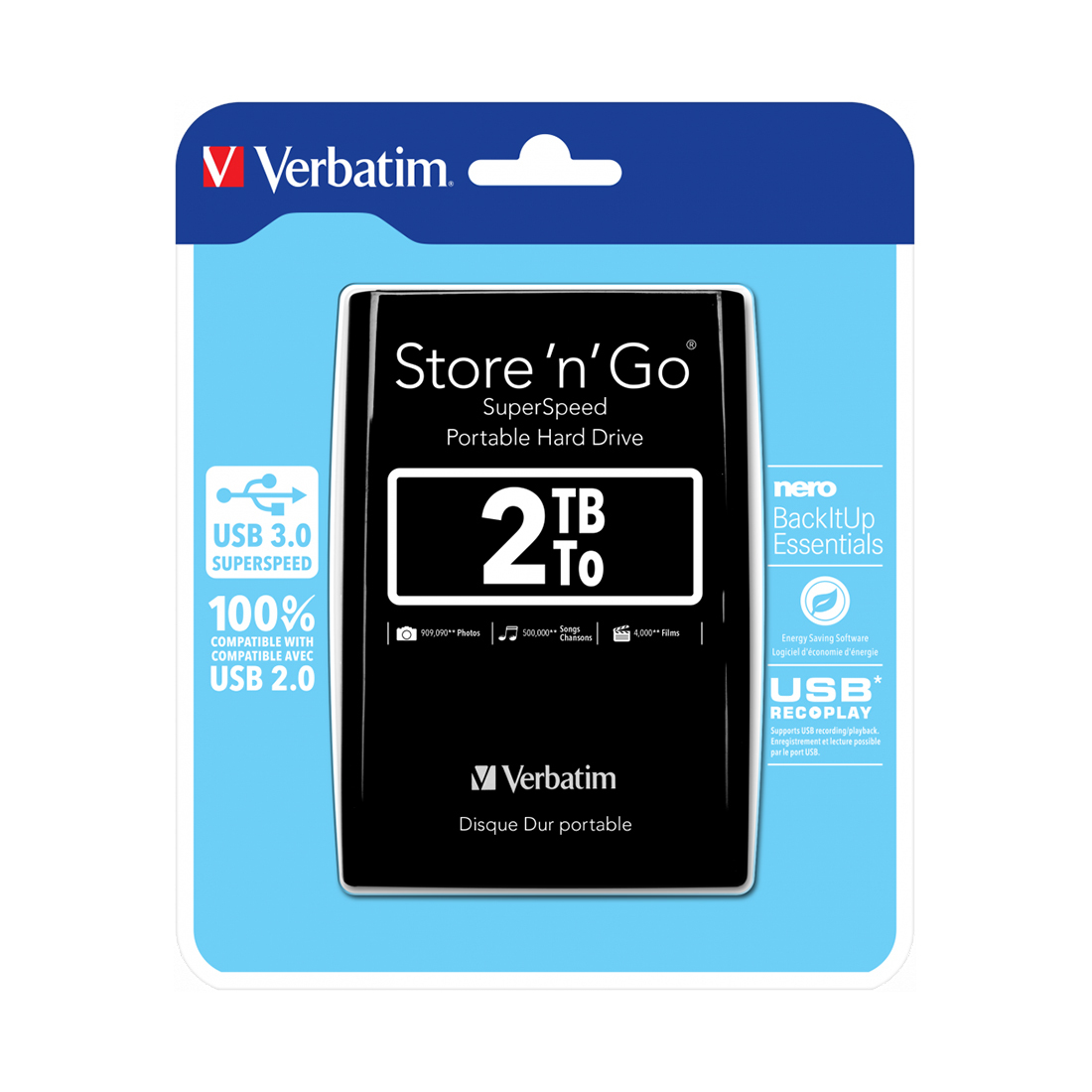 Переносной жесткий диск Verbatim Store 'n' Go — это высокопроизводительное устройство для хранения данных, которое поддерживает сверхбыстрый интерфейс USB 3.0. Храните и переносите файлы с помощью по-настоящему мобильного устройства. Стильный дизайн корпуса прекрасно подойдет к современному рабочему столу и будет отлично сочетаться с ноутбуком. Просто подключите жесткий диск к компьютеру, и он сразу будет готов к работе.